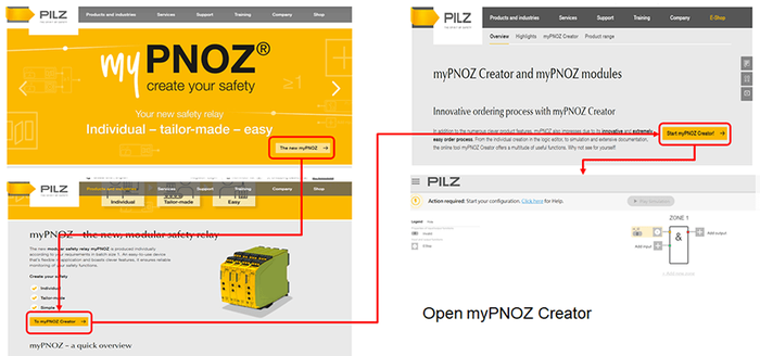 模块化可配置安全继电器myPNOZ的配置工具——myPNOZ Creator在线使用工具,只需通过电脑端上网即可使用,无需提前进行本地安装。在https://www.pilz.com.cn/zh-CN/products/relay-modules/modular-safety-relays页面中找到myPNOZ Creator的入口即可开启非凡的使用体验。