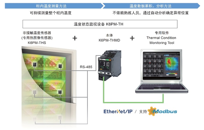 【欧姆龙加热器状态监视器K7TM】与【欧姆龙温度状态监视设备K6PM】系列能够细致、合理地定期测量加热器状态和控制柜的温度状态,不论在现场,还是在办公室,都能按照时序监控加热器老化趋势与温度变化趋势,掌握所有状态。