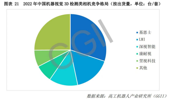 在检测场景中,GGII 调研数据显示,2022 年中国 3D 检测类相机出货量超过 2.3 万台,其中外资品牌份额超过 60%。