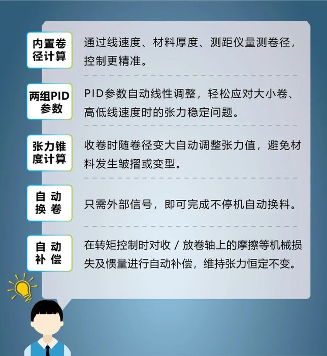 MH300内置各种控制功能,支持各种情形下张力控制的应用。
