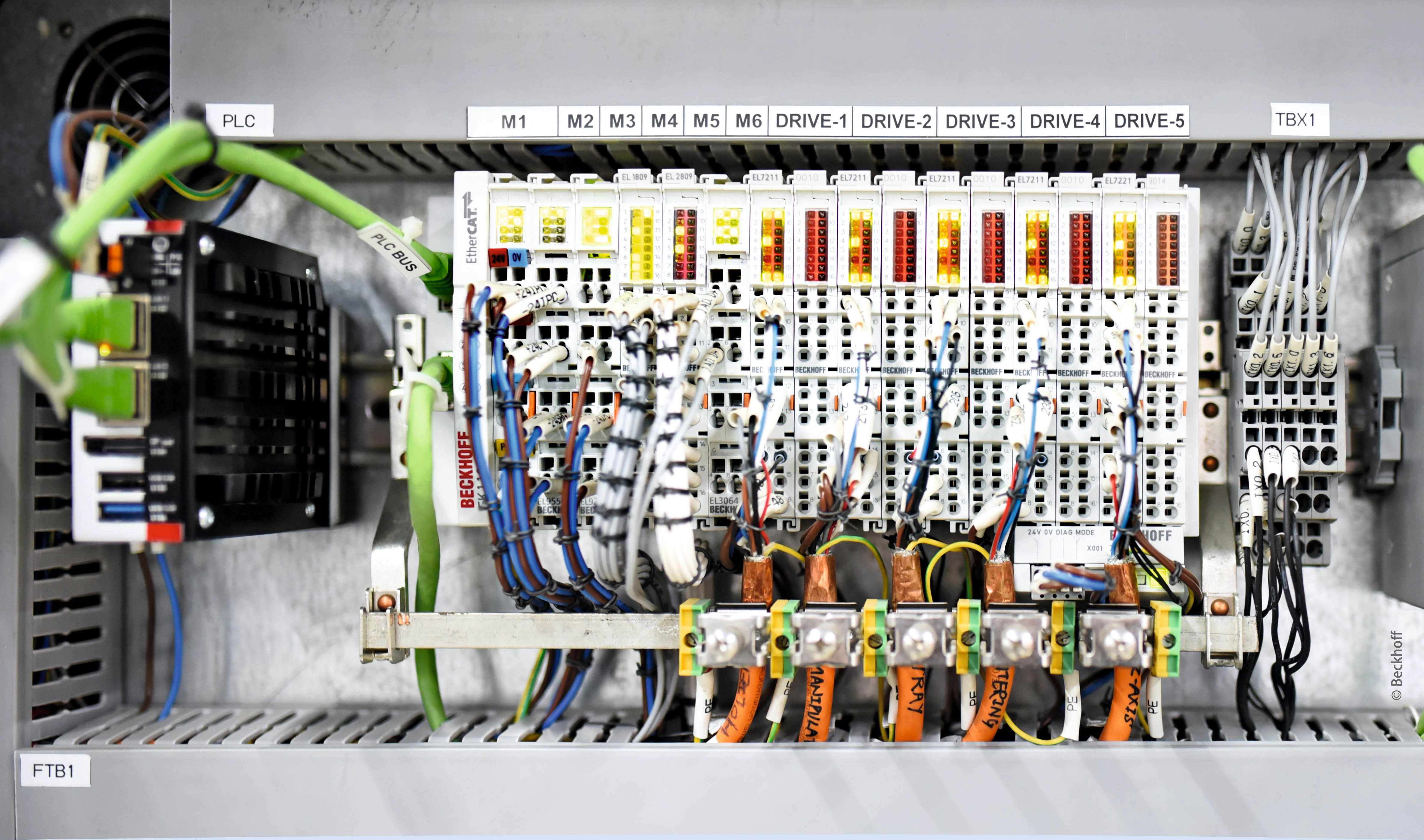 C6015超紧凑型工业PC和包括EL7211伺服电机 端子模块在内的各种EtherCAT 端子模块可以 实现极其紧凑的控制柜安装