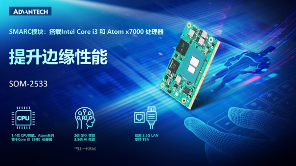 近期,嵌入式物联网解决方案供应商研华科技推出SOM-2533,这是一款SMARC系列的高性能模块,搭载Intel Core i、Pentium、Celeron 和 Atom x7000 系列处理器。SOM-2533 模块支持多达8核,据Intel研究结果显示,与前几代相比,CPU 性能提高了1.4 倍,图形性能提高了2 倍,AI 性能提高了3.5 倍。SOM-2533 模块集成LPDDR5 板载存储,带TSN功能的双路2.5G LAN 和双路CANBUS 接口。这些功能增强了端到端通信,并确保了与上一代的兼容性。此外,该模块还包括一个SERDES 接口,用于满足额外的LAN 需求,以及用于增强系统安全性的TPM 2.0。