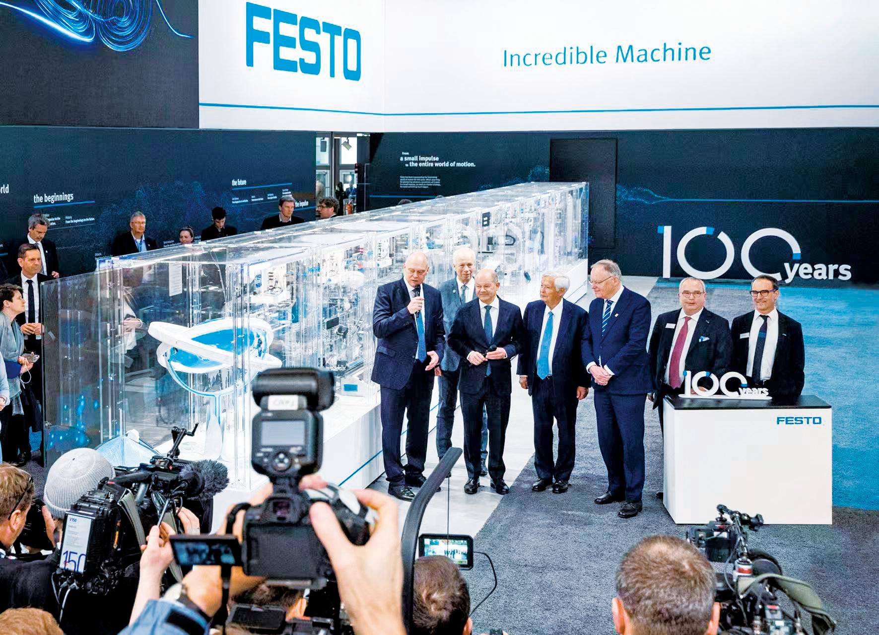 创新不仅能解决具体问题,更可能重塑整个行业并催生新产业。客户与合作伙伴构成的生态体系是推动创新的原动力。这台机械将带领参观者穿梭于特定行业场景:电动汽车电池生产、生命科学实验室自动化、现代物流与半导体工业,追溯企业历史,并展望未来执行器技术。这一切都展示出Festo 变革的脚步永不停歇。