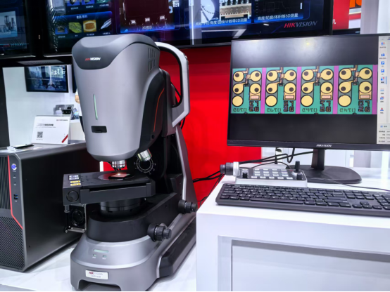 质量检测展区,通过多种感知技术,海康威视形成了从宏观到微观、从表面到内部的质量检测能力,持续推动工业质检向智能化、精准化升级。如在食品检测等需要详细了解物品成分的质检领域,气相色谱单四极杆质谱联用仪可实现成分分析、物质识别与鉴定。在电子制造领域,超景深3D数码显微镜通过电动变焦与3D图像深度合成,实现微米级的观测测量与分析,可现场实操体验最高放大6000倍的超精细图像观测及2D、3D测量的成像效果。高光谱推扫相机可用于颜色偏差分析、物质识别分选、食品药材分级等场景。