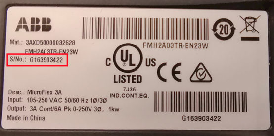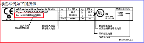 若ACS600序列号为7位数,例如:7260034,第一位数字7表示生产年份(1997年),26表示生产周数,0034为生产流水号。