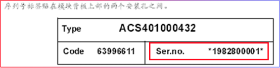 · ACS14X系列(ACS140、ACS141、ACS143)序列号所在位置如下图所示: