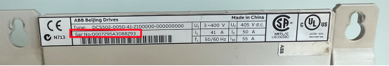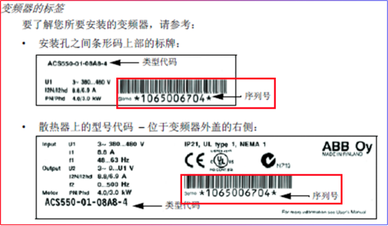 ACS550序列号说明:第1个数字1 是制造工厂代码,2、3位代表制造年份(例如:上图中示例序列号中的06代表2006年),第4、5位代表制造周次,后5位代表生产序列号,从00001开始计数。