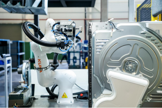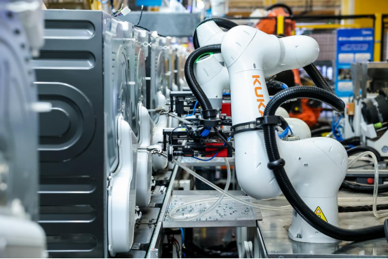 与此同时,在干衣机后盖自动锁附工站,库卡“iico协作机器人”与计划智能体深度协同,通过实时上传到工厂大脑的图片,自动解析机型特征并快速匹配多种产品型号。即便面对不同洗衣机型号的混流生产场景,工厂大脑也能实时完成机型识别,自动更新锁附螺丝的程序,实现如同人类般灵活高效的柔性化作业,让混线生产的精准度与效率得到双重提升。