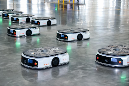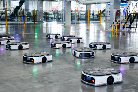 荆州工厂的智能体不仅局限于机器人,实际生产过程中,注塑车间物流81台AMR,当工厂摄像头拍到货架的情况,实时汇报到工厂大脑,在物流智能体指挥下进行物流搬运,具备跨域调度、动态路径感知、灵活换路、行人识别、自主绕障等能力,就像一台台公路上的汽车,在红绿灯、交通标志、交警的引导下可以快速高效将车间物料搬运到位,且不会产生任何的拥堵等车。同时,AMR也会主动向工厂大脑上报任务状态、设备状态、二维码健康度等信息,并实时推送维护信息到员工的美信,让运维更简单。