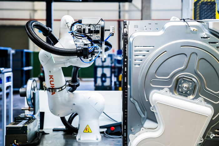 眼下,将AI与工业机器人相互融合,正逐渐成为中国制造业升级的重要解决方案。而基于对行业痛点的深入理解,库卡在美的洗衣机荆州工厂,打造出一个多品类、全场景覆盖的“AI+工业机器人”解决方案,被落地部署。该方案也助力美的荆州工厂成为全行业首个“智能体”工厂。