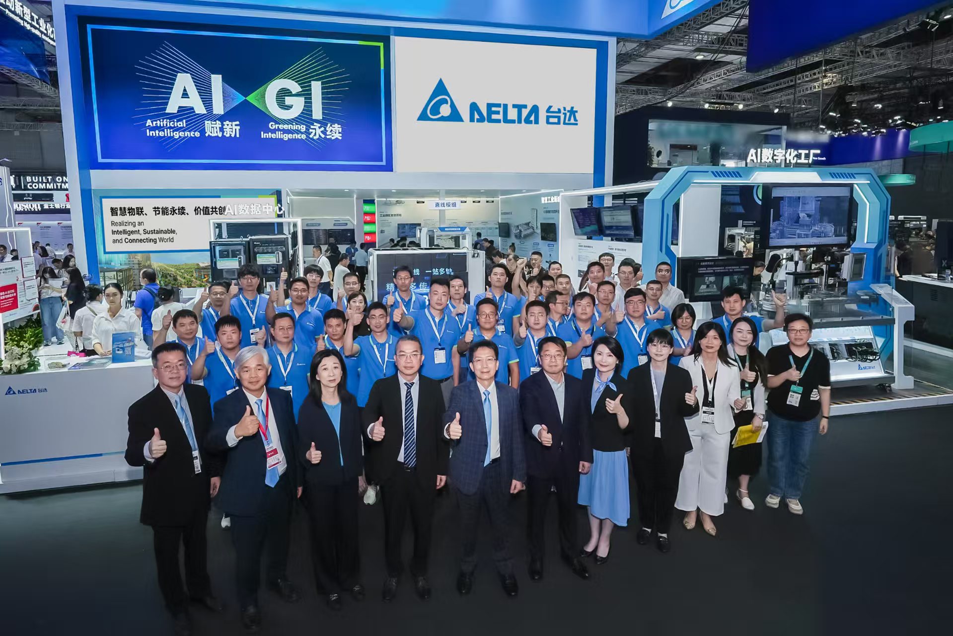 台达以“AI赋新 GI永续”为主题亮相第二十五届中国国际工业博览会,集中展示创新研发的绿色产品及解决方案。主管与参展同仁合影