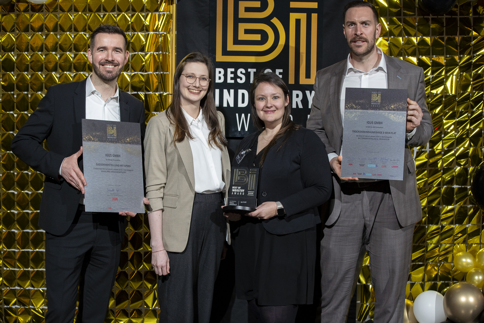 荣耀时刻:凭借 e-skin flat 产品,igus 在“2025 年度行业最佳奖”的电池研发与生产类别中斩获殊荣。此外,igus 凭借用于车道调整的 Apiro 模块化齿轮箱系统,成功入围模块化机械概念类奖项决赛名单。(资料来源:Vogel Communications Group GmbH & Co. KG)