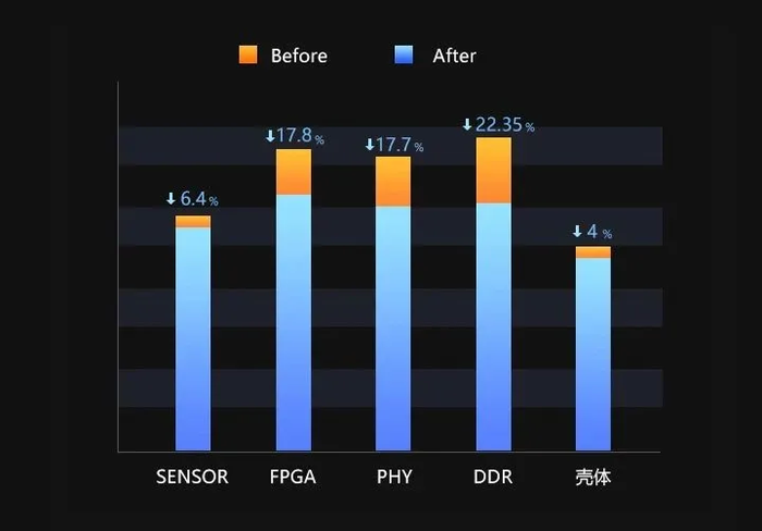 CS系列二代工业相机全新升级,进行了嵌入式架构、电源效率等多方面的优化,全功能条件下,整体功耗比同类产品低20%左右,同时大幅降低核心组件的温度,提高可靠性。