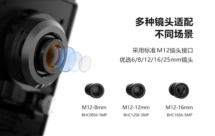 采用标准M12镜头接口,适配多种镜头,可轻松应对各类复杂的工业读码场景及高分辨率高解像力场景,适配FA镜头及远心场景镜头可完成极小码识别。