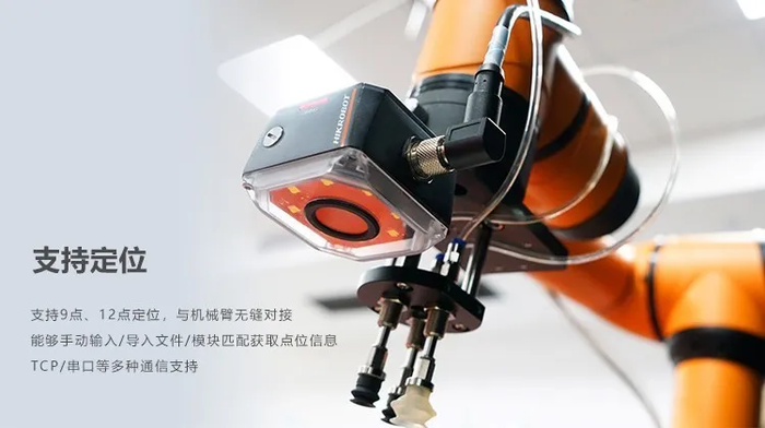 SC2000Pro的娇小身材可完美搭配机械臂,新增了标定与对位功能,实现定位引导,大程度降低了视觉定位系统的复杂度。