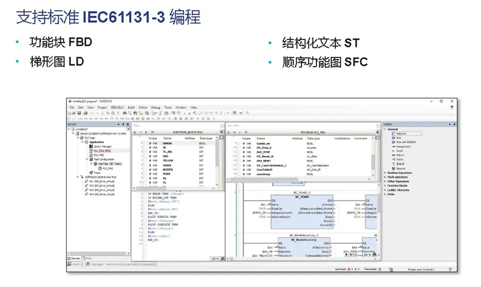 采用全新ISPSoft软件进行编程,操作直观简单,除了支持IEC61131-3编程语言外,还支持在线编辑、在线校验、台达FB功能块,程序加密等功能,方便客户程序开发。