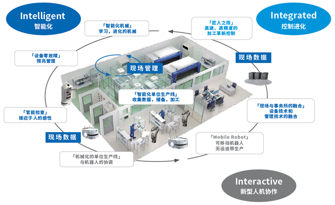 欧姆龙以实现不会停止的产线、不生产不良品的生产设备为目标,通过3个i,integrated(控制升级)、intelligent(智能化)、interactive(新型人机协作)揭示了"i-Automation!"的战略构想,进行制造现场的革新。比如,使拥有成熟技术的老工匠的技能数字化,通过控制和信息技术的融合,intelligent(智能化),使制造的生产性和品质有质的飞跃。