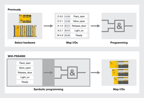 PSS 4000采用的是完全独立于硬件的变量式编程方式,因此在程序设计的流程上,给与了使用者非常大的灵活性。对于程序设计者而言,在项目的先期,能够完全脱离硬件的选择进行逻辑控制的编辑。从而实现了在项目设计阶段,硬件部分和软件部分同时实施、互不干扰,即使是需要在某个环节进行微调,对整个项目而言,整体改动也不大。