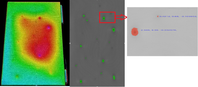 同时,SICK 3D相机也具有非常高的分辨率,有助于细微的缺陷获得较好的检测效果,下图是EasyRanger开发界面以及电芯表面凹坑的检测效果。