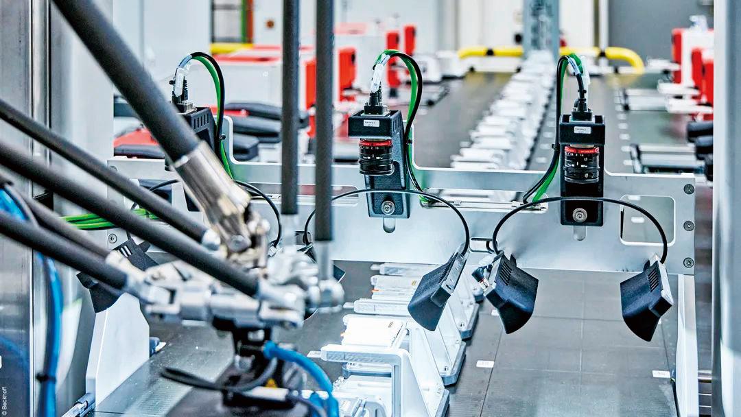 图2 横立于三条通道上的视觉系统,会在每个端子模块通过时捕捉其 DataMatrix 码,然后将其与 XPlanar 动子的 ID 联系起来
