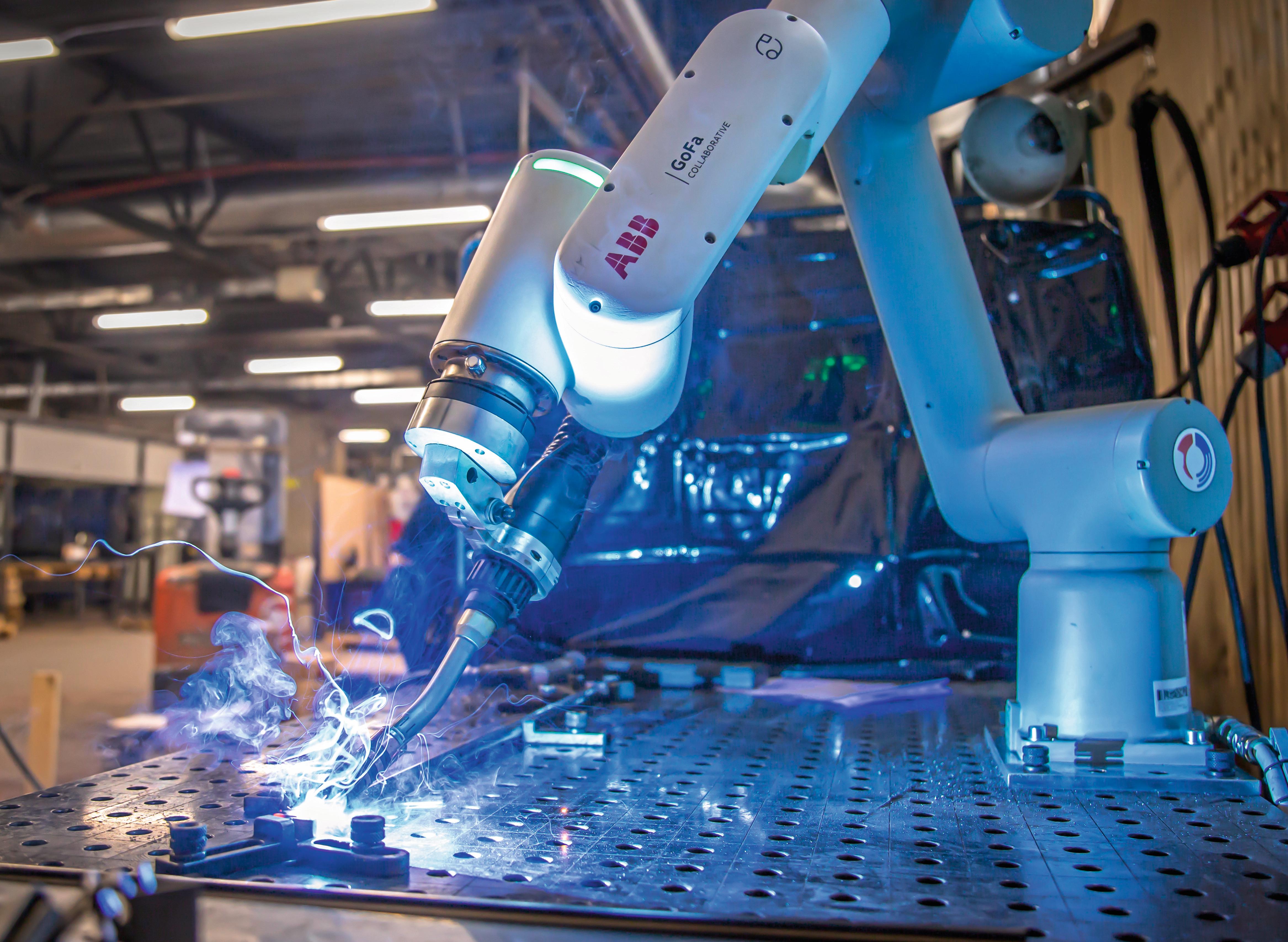图1 在芬兰Lankapaja公司位于瑞典的工厂中,ABB的GoFa协作机器人正投入应用。这些机器人与员工并肩工作,执行着组件焊接站的焊接任务