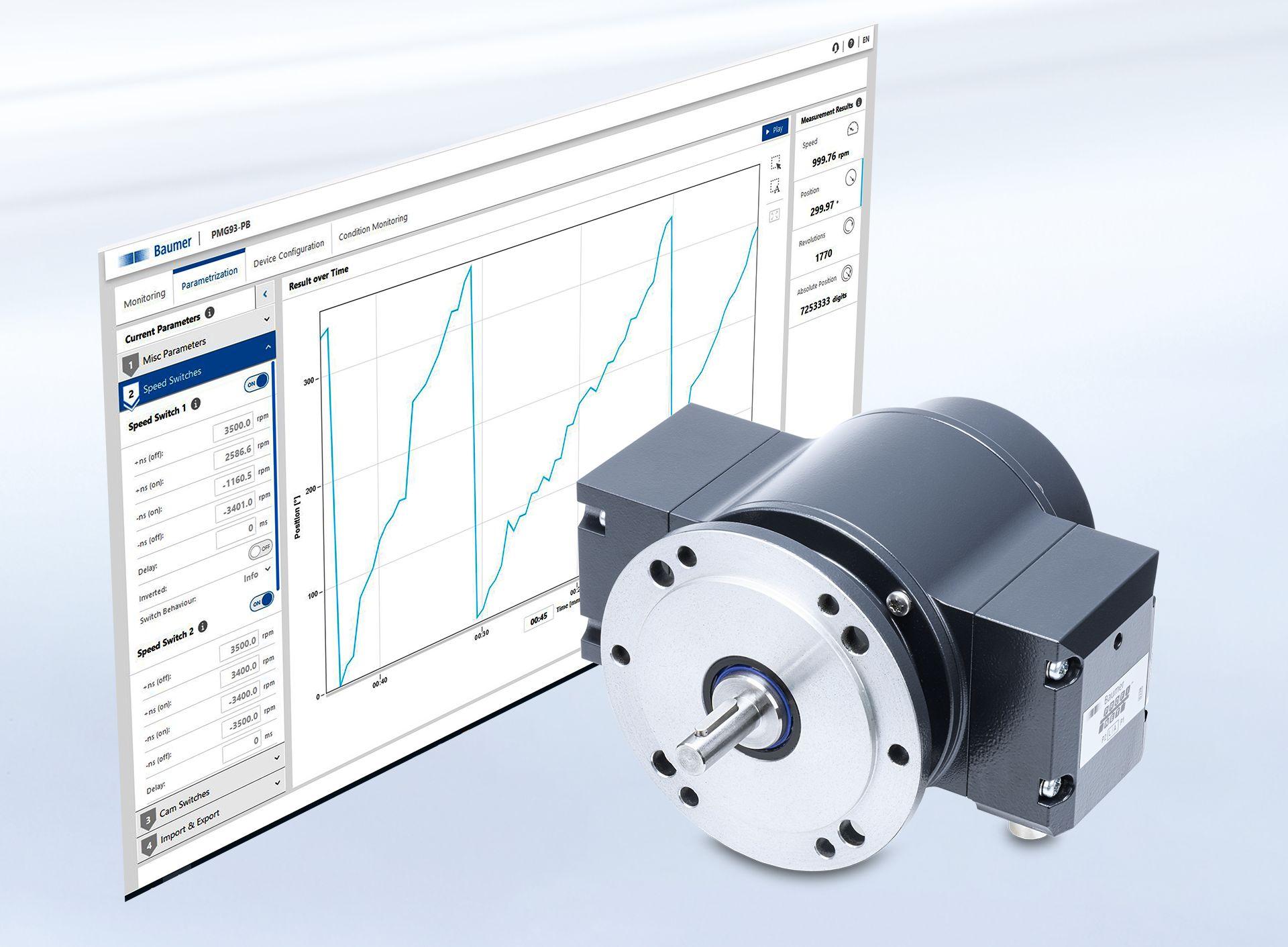PMG93可通过不受应用平台限制的Web配置器进行参数设置,这意味着只需一台带Ethernet接口的笔记本电脑,即可轻松设置参照运动(自学习)中的起始和结束位置。与需要手动设置的机械式凸轮开关相比,这显然更加便捷。而且与传统的数字式凸轮开关不同,堡盟的解决方案无需任何额外软件,只需在离线模式下借助普通的网页浏览器(如Firefox或Edge)即可进行设置。这样就避免了因内部IT部门审核或兼容性问题而导致的延迟。由于采用数字化参数设置,在更换产品时,绳索长度的调整更加简单,只需要通过Web配置器或输入信号进行预设即可。