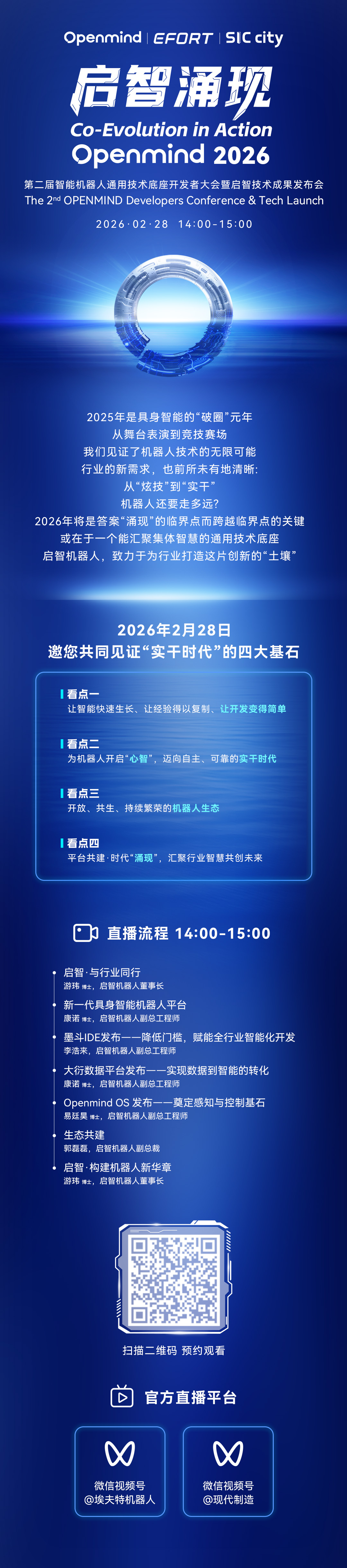 2025年是具身智能的“破圈”元年,我们见证了机器人技术的无限可能,从“炫技”到“实干” 机器人还要走多远?2026年答案即将“涌现”。汇聚集体智慧的通用技术底座启智机器人,致力于为行业打造这片创新的“土壤”。