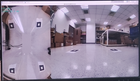 图2. 4路1080p, 30fps 环视拼接及YOLO v5 物体识别效果